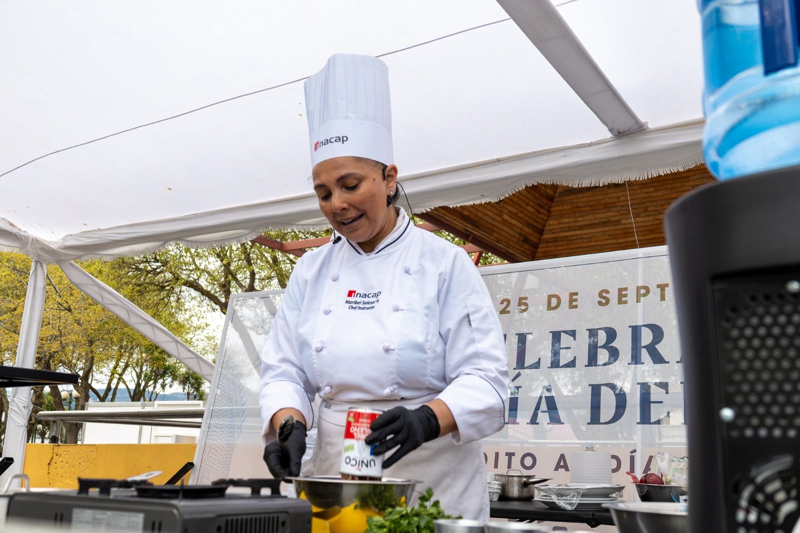 El lanzamiento se realizó en el escenario principal del evento y contó con la chef penquista Maribel Salazar, quien destacó que el libro incorpora al jurel chileno en recetas tradicionales como pastel de choclo, charquicán, caldillos y ceviches, además de preparaciones internacionales como gyozas o arepas.