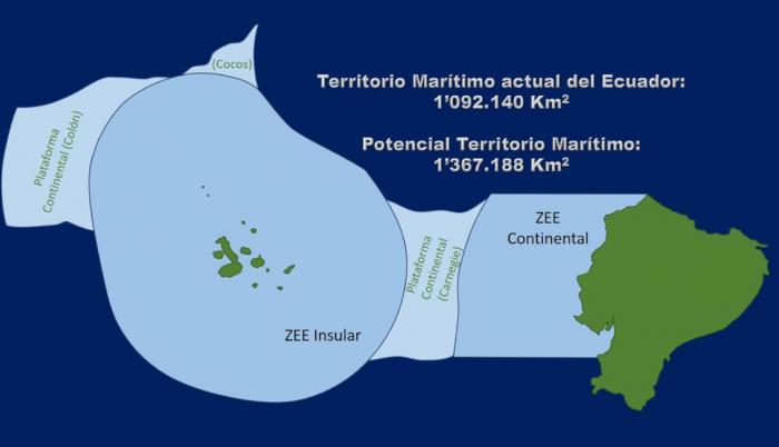 Mapa de las Zonas Económicas Exclusivas ecuatorianas y plataformas continentales