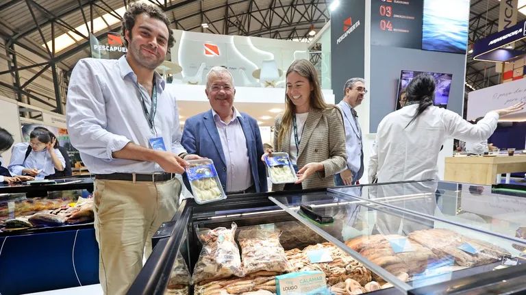 Pescapuerta ha dejado patente su poderío como armadora y comercializadora con uno de los estands más grandes de la feria y situado a la entrada del recinto. Allí el director de la empresa, José Puerta Amoedo, y su hermana Sofia Puerta, responsable comercial que son la tercera generación de una compañía que fundó su abuelo, atienden a los clientes. El padre de los dos jóvenes, José Puerta, el presidente no estuvo ayer en la feria. Con ellos se halla también el director comercial Jean Baptiste Chassin que habla un perfecto español (eso sí, con marcado acento francés) para dar respuesta a la demanda de unos clientes cada vez más globales.