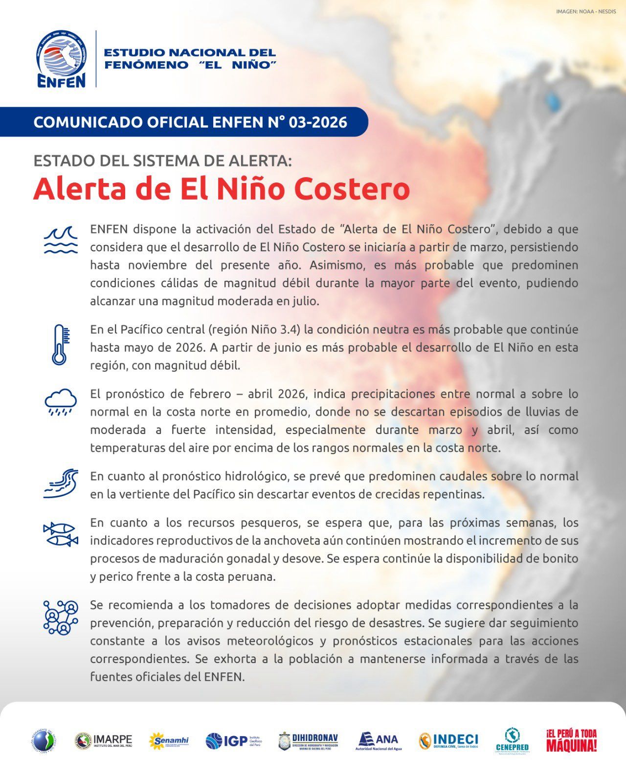 Perú - Enfen declara la alerta nacional por fenómeno climático "El Niño costero"