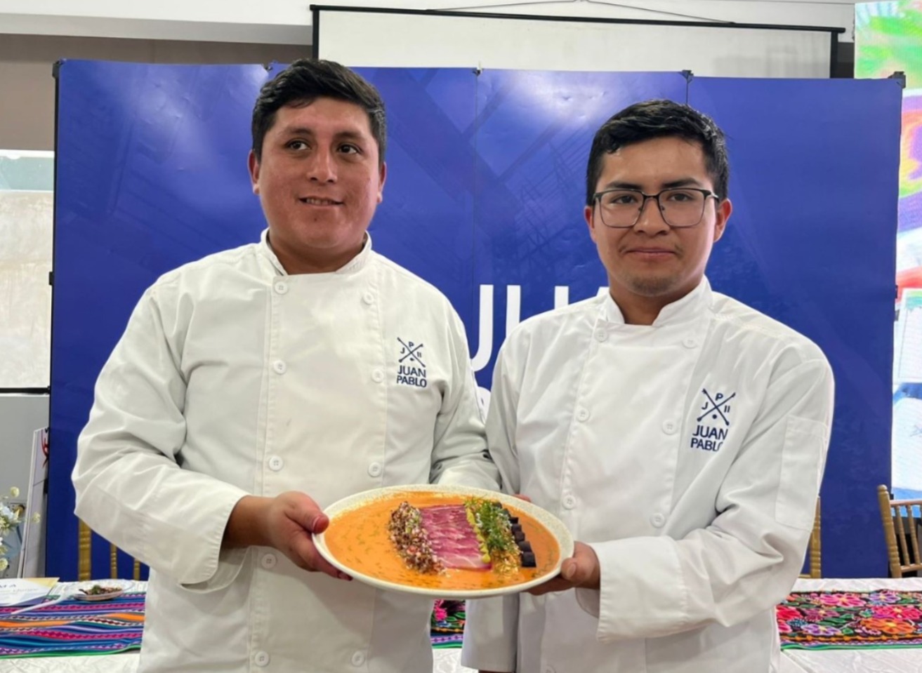Los estudiantes Orlando Rodríguez y Luis Cárdenas, de la Escuela de Alta Cocina Juan Pablo II de Ayacucho, obtuvieron el primer lugar en el concurso nacional de gastronomía con el plato Paiche sostenible, realizado en el marco del Amazónico Fest en la ciudad de Lima.