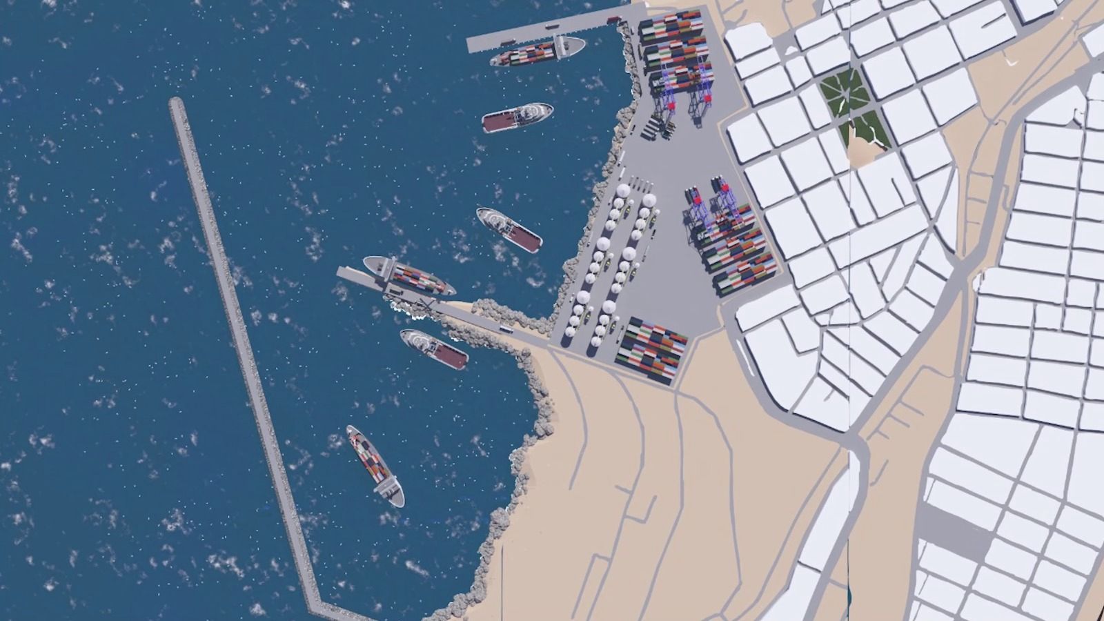 Precisó también que el nuevo terminal contará con un espigón en “L” y un rompeolas de escollera, diseñado para atender carga fraccionada, graneles sólidos limpios y carga. Además, brindará servicios modernos de embarque, desembarque, transbordo, almacenamiento y amarre de naves.