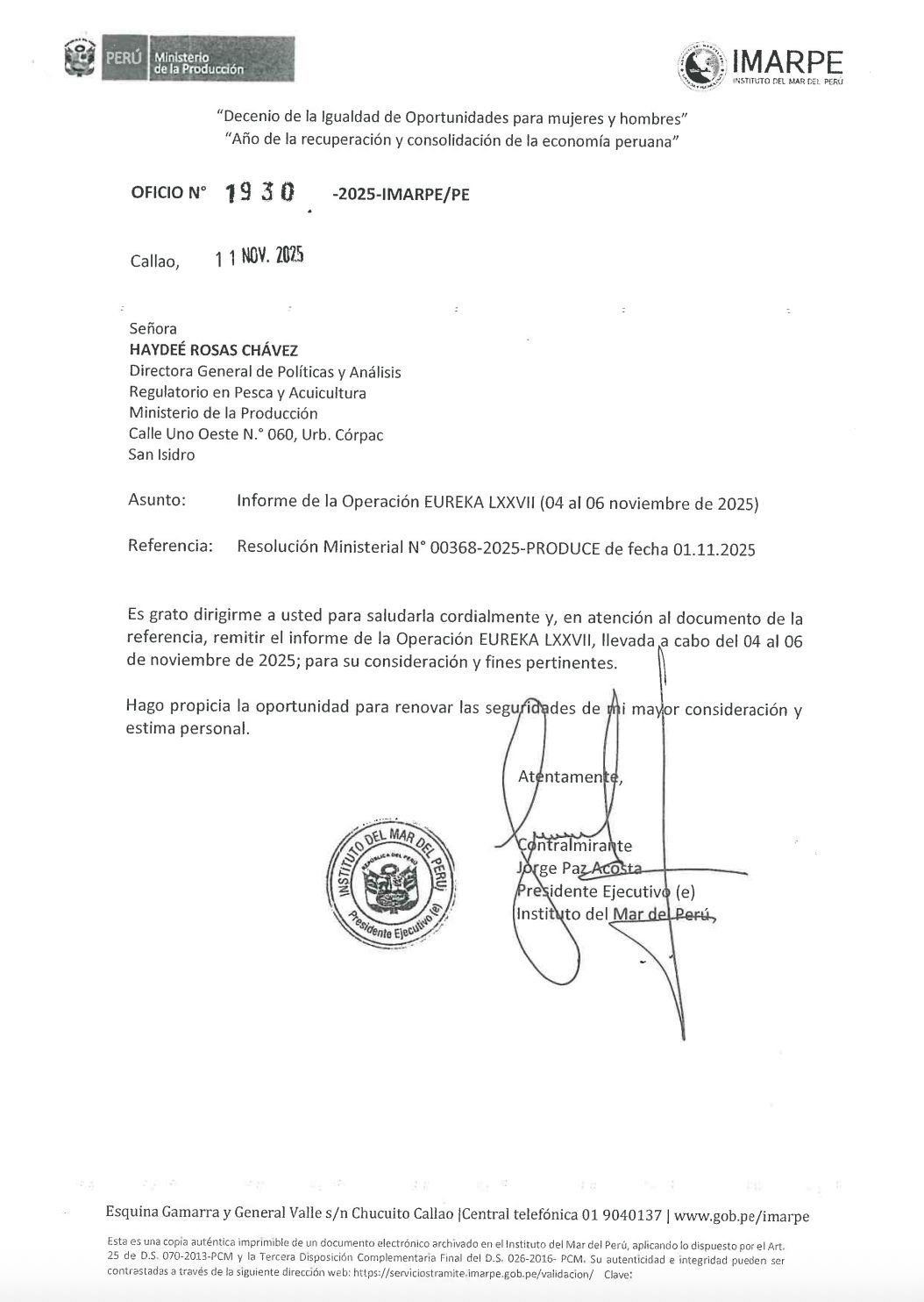 Perú - IMARPE publica Informe de "Operación Eureka" (Correspondiente al Oficio N° 1930-2025-IMARPE/PE)
