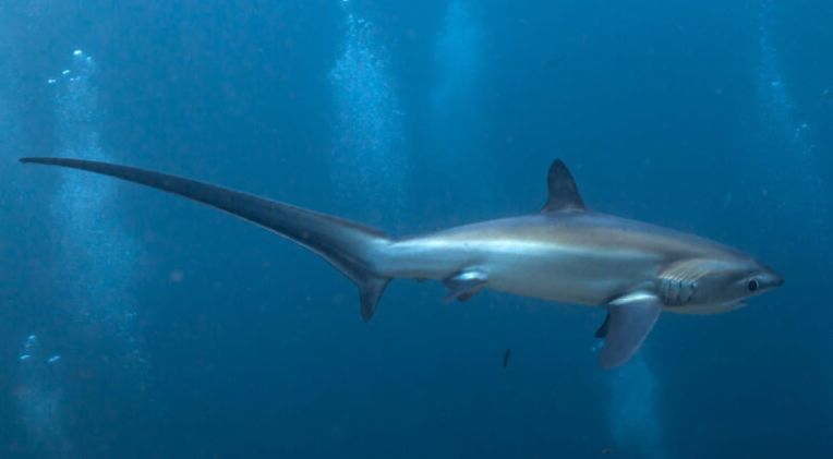 Tiburón zorro pelágico (Alopias pelagicus). Foto: cortesía Jenvit Seriburi/Inatu