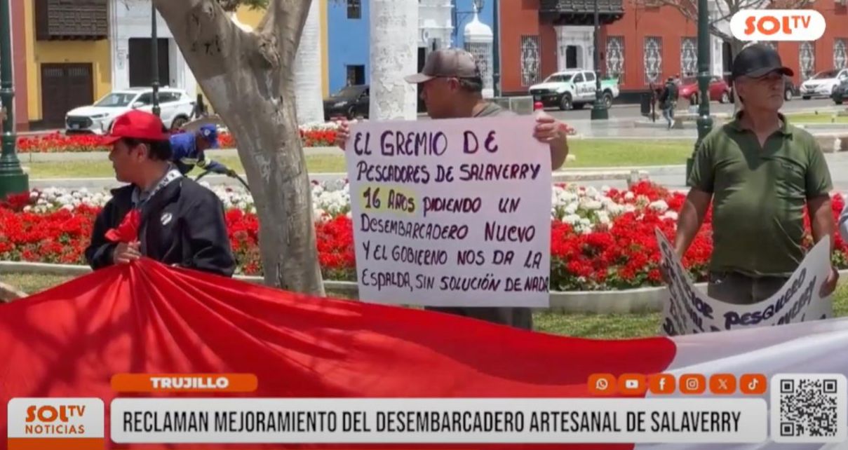En Trujillo, pescadores artesanales realizaron una protesta frente a la Casa de Gobierno de La Libertad para exigir el mejoramiento del desembarcadero artesanal de Salaverry. La población y trabajadores del sector pesquero denuncian que las condiciones actuales ponen en riesgo la seguridad de quienes descargan productos hidrobiológicos diariamente. La movilización reunió a pescadores de Salaverry, Pacasmayo y Malabrigo, quienes buscan soluciones inmediatas.